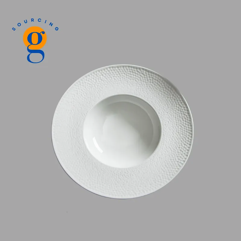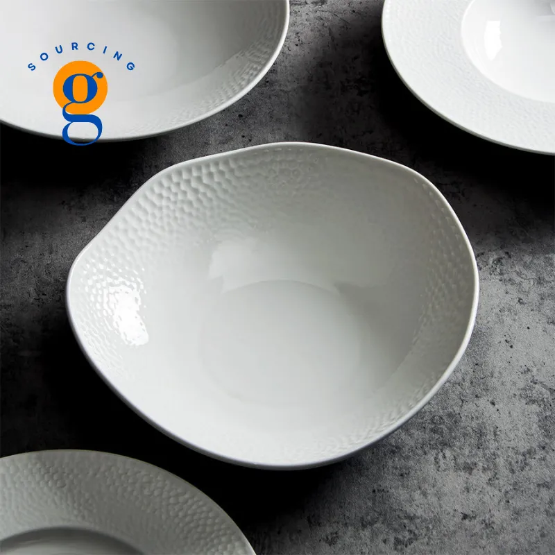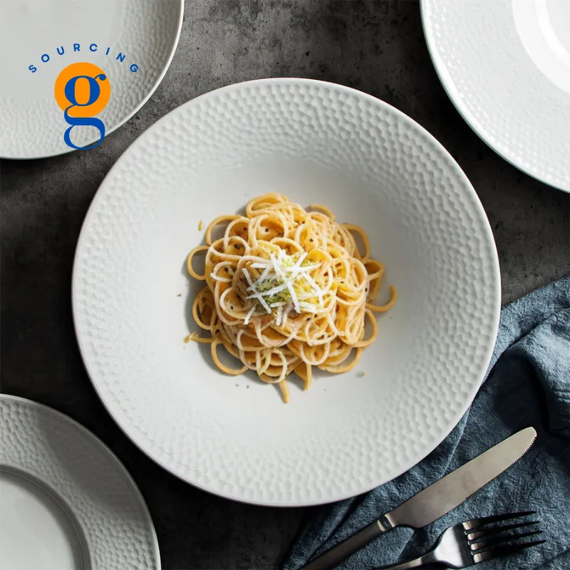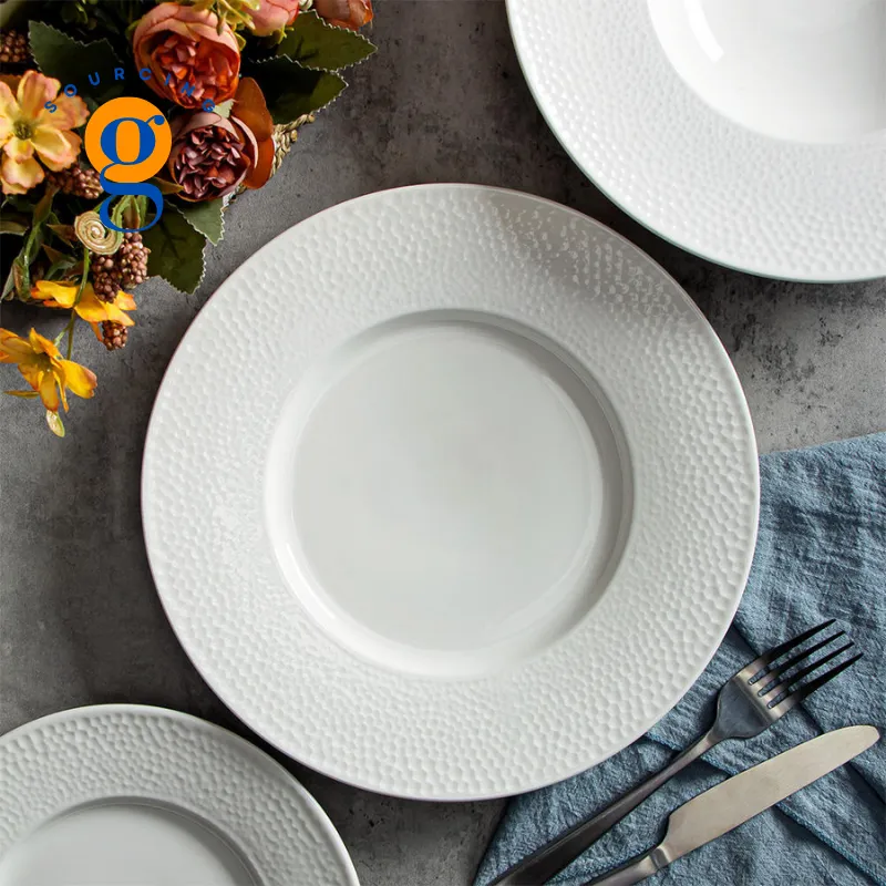 Minimalist 7.5-10.5 inch Hammered Pattern Ceramic White Catering Set Dinnerware For Hotel Project