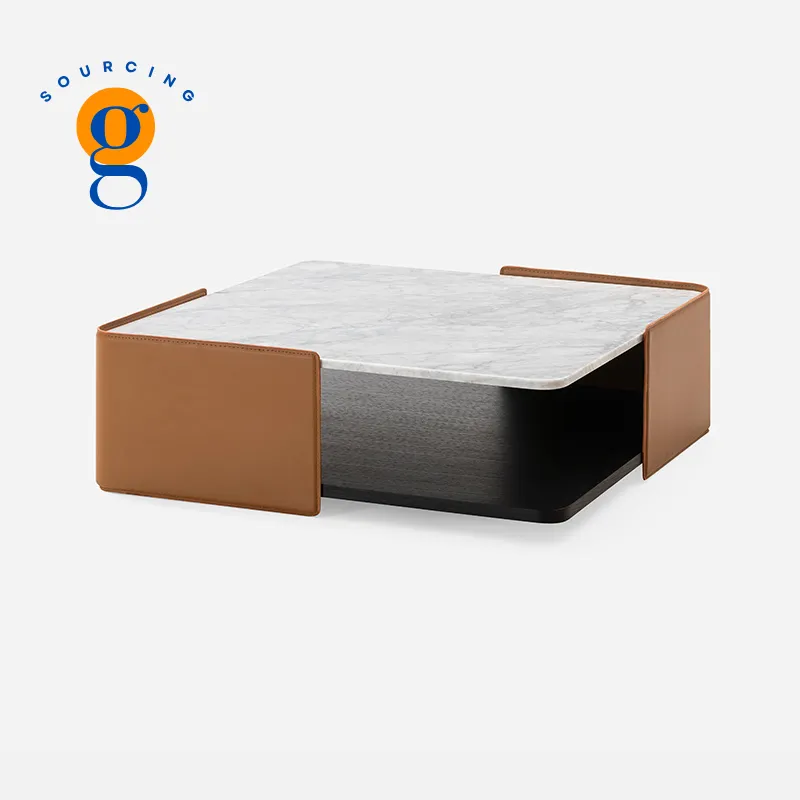 Elegant Square Coffee Table Marble Top Storage Drawer Hotel Furniture Custom Branding for Switzerland