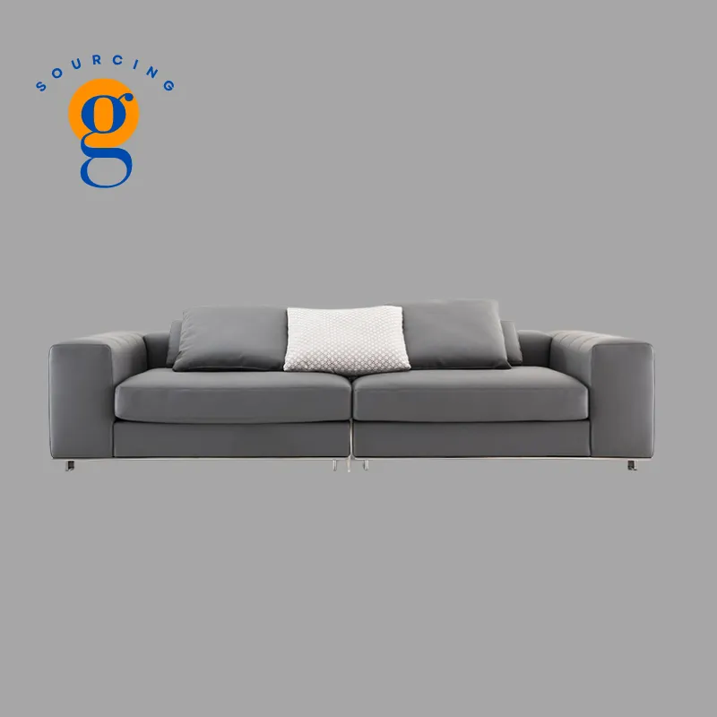 Modern Minimalist Three Seater Sofa - Contemporary minimalist three-seater sofa with clean design and superior comfort. Ideal for corporate reception areas and executive offices. Available in dark gray with custom fabric and premium suede materials.